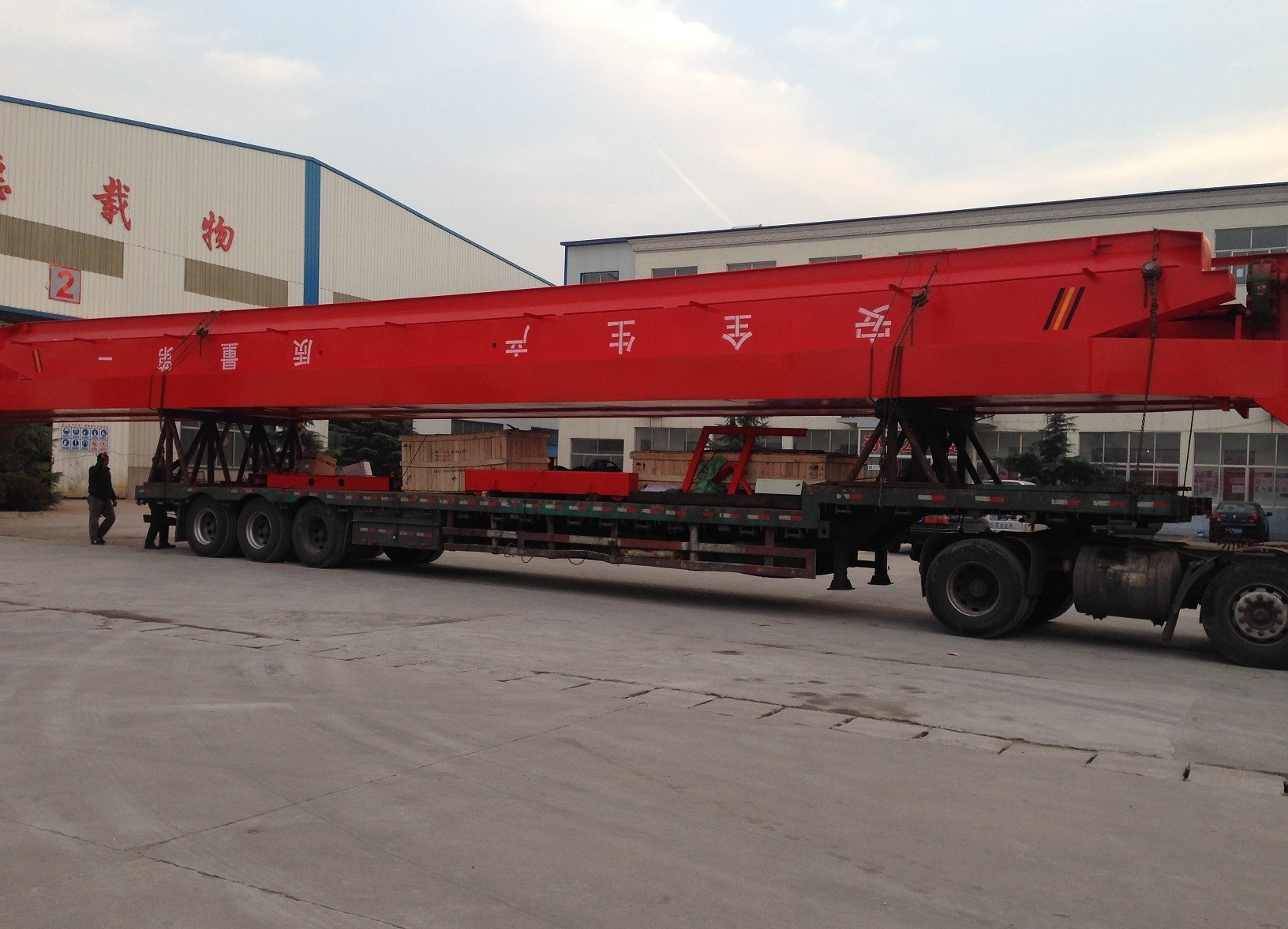QL電磁掛梁起重機(jī)安裝完成是橋架兩端通過運(yùn)行裝置直接支撐在高架軌道上的橋架型起重機(jī)。它由橋架(包括主梁和端梁)、起重小車、大車運(yùn)行機(jī)構(gòu)和電氣控制系統(tǒng)等部分組成。起重小車上裝有起升機(jī)構(gòu)和小車運(yùn)行機(jī)構(gòu)在橋架主梁上沿小車軌道橫向運(yùn)行;起重機(jī)沿廠房或露天貨場的高架軌道縱向運(yùn)行,其掛梁方向分為與主梁平行和與主梁垂直兩種,并在掛梁下方裝有電磁吸盤,通過電磁吸盤完成物料搬運(yùn)工作。