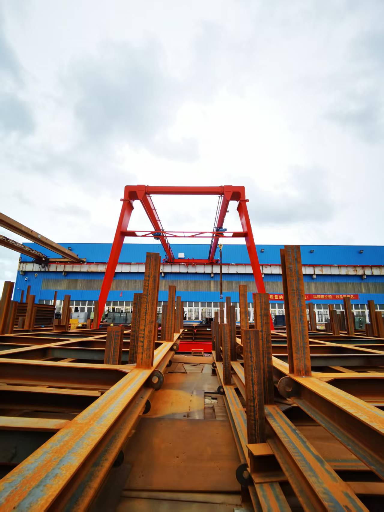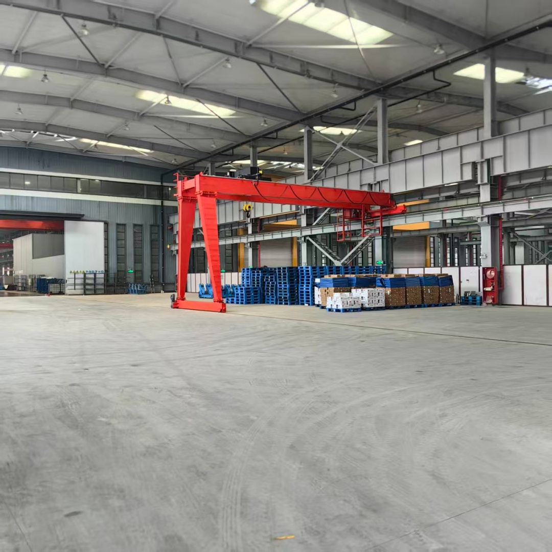 一側(cè)有支腿,沿地面軌道運(yùn)行;另一側(cè)無支腿,沿廠房上部軌道運(yùn)行,形成 "半門" 結(jié)構(gòu)