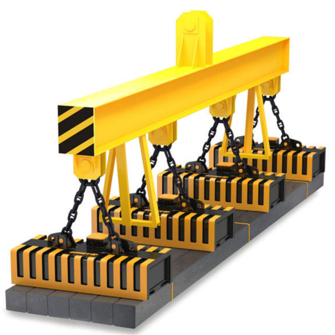 電磁吸盤吊具:通電產(chǎn)生磁力吸附鋼板,適配鋼材堆場、剪板機(jī)上料,斷電時需配備備用吊索防止墜落;