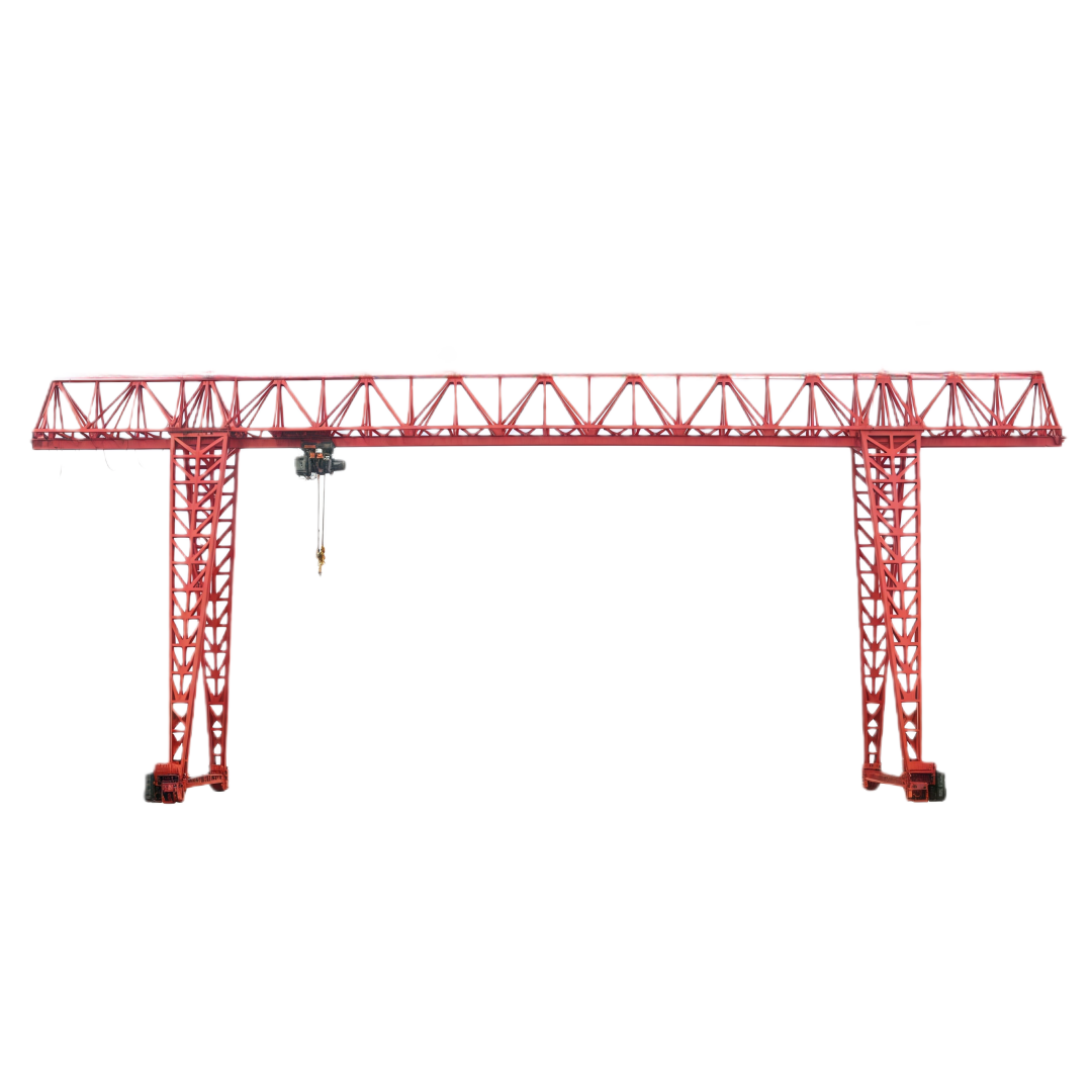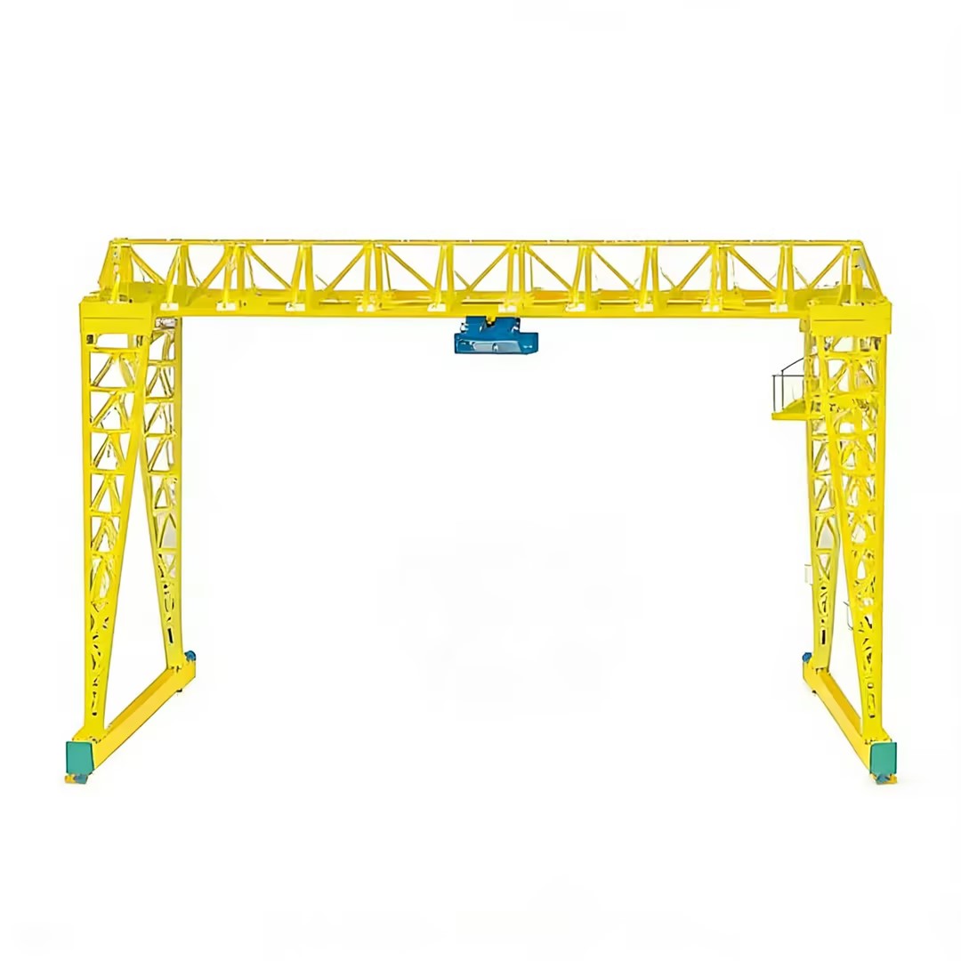 MHh型電動葫蘆門式起重機(jī)(俗稱“花架龍門吊”)是一種輕量化、中小起重能力的通用型起重機(jī)。它屬于橋式起重機(jī)的一種變形,但其主梁通過支腿支撐在地面軌道上運(yùn)行,構(gòu)成一個“門”形框架,因此得名“門式起重機(jī)”。