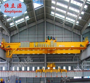 適用干冶金工廠在室內(nèi)或露天的固定跨間較繁重地裝卸及搬運(yùn)具有磁性的黑色金屬制品與材料(如鋼錠、型鋼、生鐵塊)在機(jī)械廠。庫房中也常有來搬運(yùn)鋼料、鐵塊、廢鐵、廢鋼、鐵屑等物料。