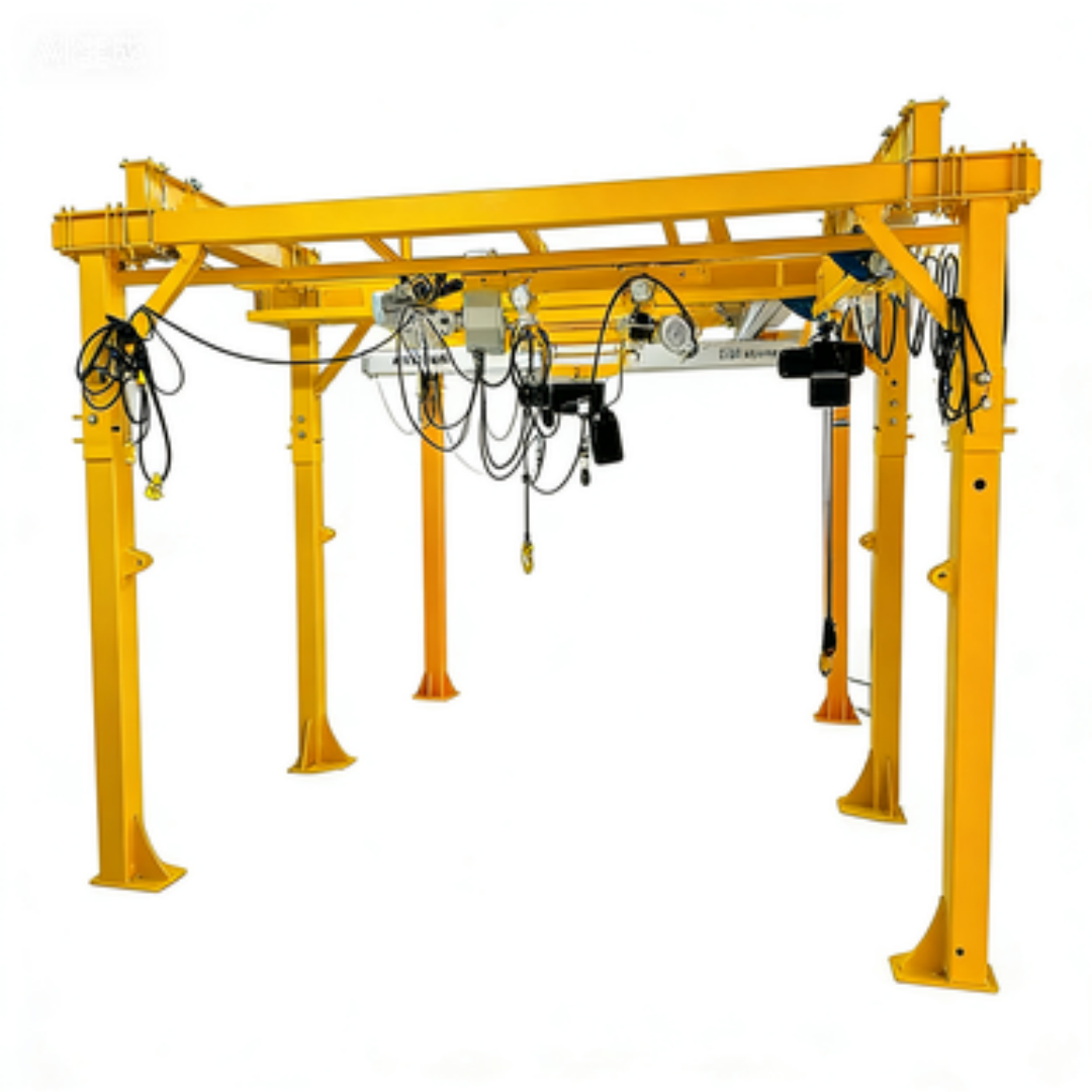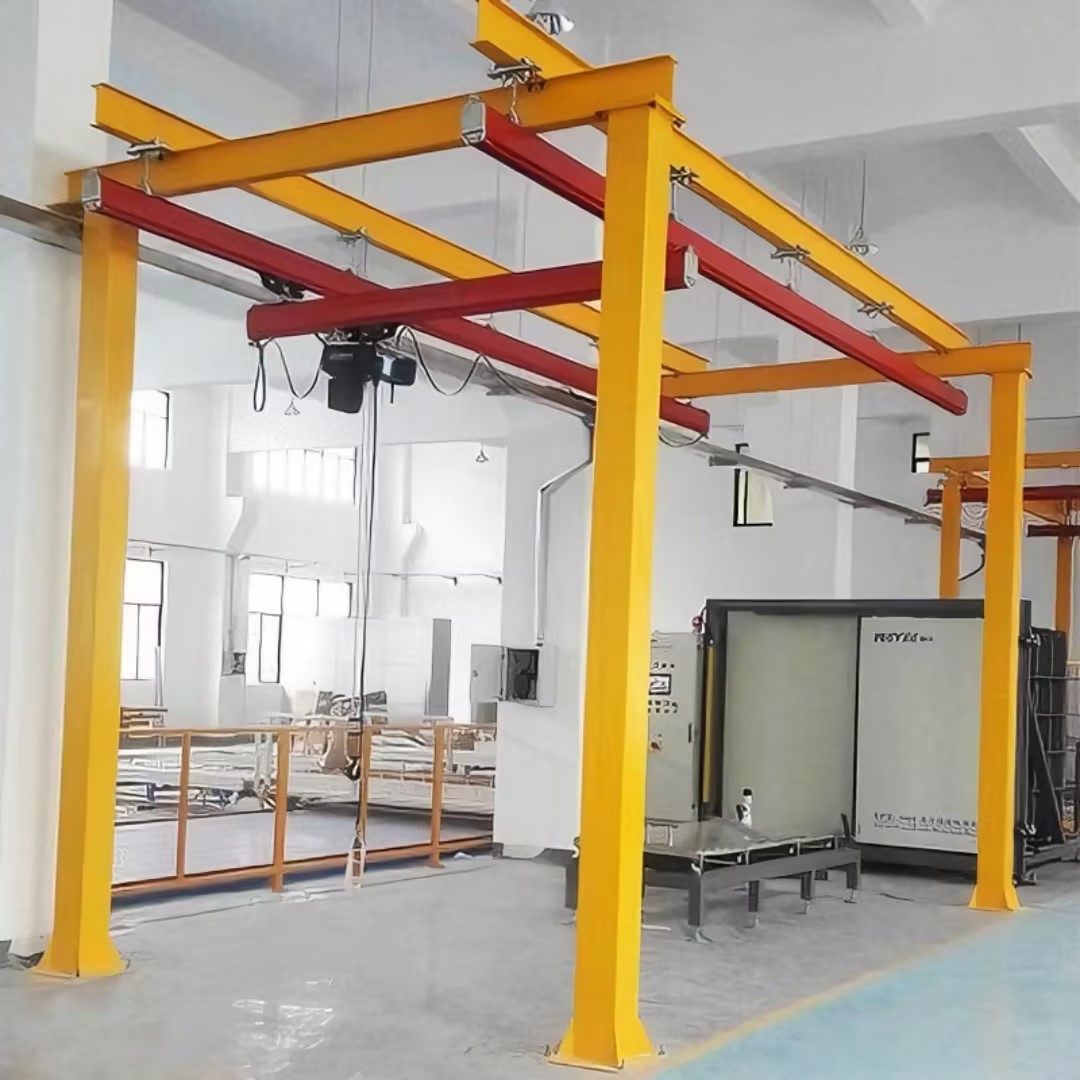 該類起重機(jī)除基礎(chǔ)的起重設(shè)備安全配置外,還針對(duì)輕載高頻作業(yè)場(chǎng)景強(qiáng)化了防護(hù)設(shè)計(jì)。像限位開(kāi)關(guān)能精準(zhǔn)控制起升高度和小車運(yùn)行行程,避免沖頂或超程碰撞;過(guò)載保護(hù)裝置在負(fù)載超出額定值時(shí)會(huì)立即切斷動(dòng)力源,防止軌道或部件因超載損壞;同時(shí)配備斷電保護(hù)功能,突發(fā)斷電時(shí)可鎖定起重狀態(tài),避免重物墜落。部分高端型號(hào)還帶有彈性懸掛系統(tǒng),通過(guò)球形鉸鏈設(shè)計(jì)減少運(yùn)行振動(dòng),降低結(jié)構(gòu)損耗的同時(shí)進(jìn)一步保障作業(yè)安全。